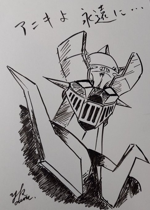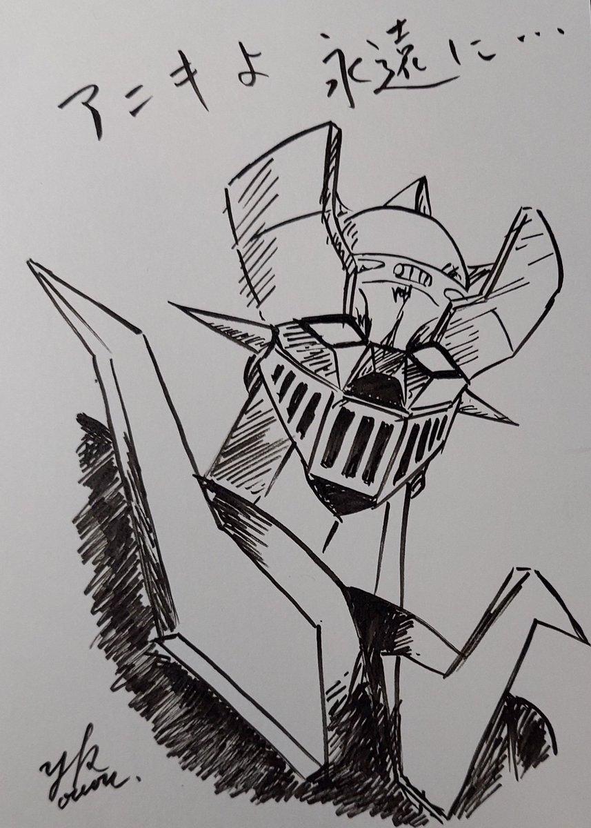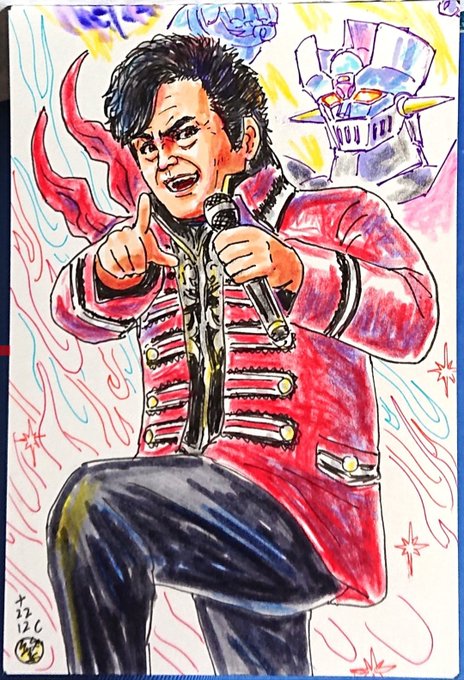 描きました。似てないけど🥲 水木一郎さんの歌は若いころから聞きまくってたので、これからも曲がある限り思い出が色褪せることはないでしょう。 晩年の絞り出すような歌い方も辛かったしね…。 おやすみなさい、アニキ~🫵 #イラスト #水木一郎さんありがとう