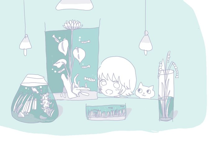 𓆡𓆜𓇼𓈒𓆉 𓆛 𓆞𓆡 𓇼𓈒𓆉 いきものを育てることが大好きな子の絵を描いています。 𓆡𓆜𓇼𓈒𓆉 𓆛 𓆞𓆡 𓇼𓈒𓆉 #創作 #絵描きさんと繋がりたい #イラスト練習中 #イラスト好きな人と繋がりたい #青 #猫好きさんと繋がりたい #アクアリウム #水槽