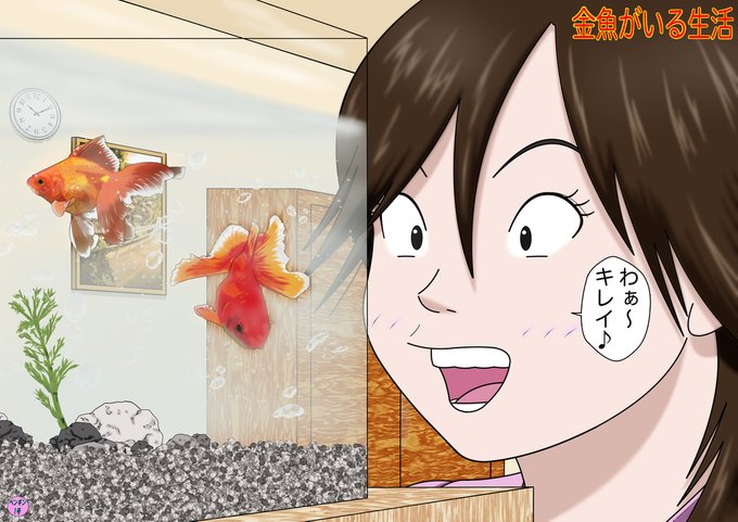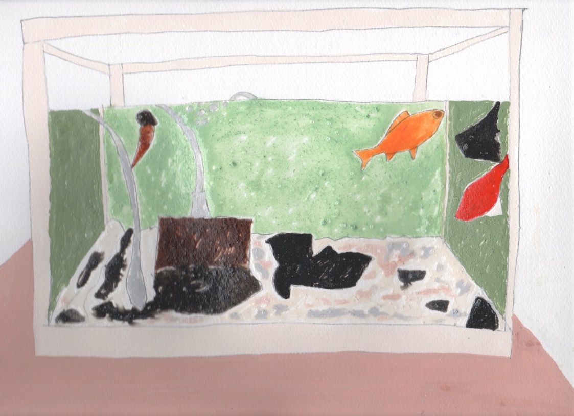 金魚の水槽2。 2022/8/23 #金魚 #水槽 #fish #蓑島えみ #emiminoshima #minoshimaemi #イラスト #イラストレーター #illustration #drawing #painting #絵