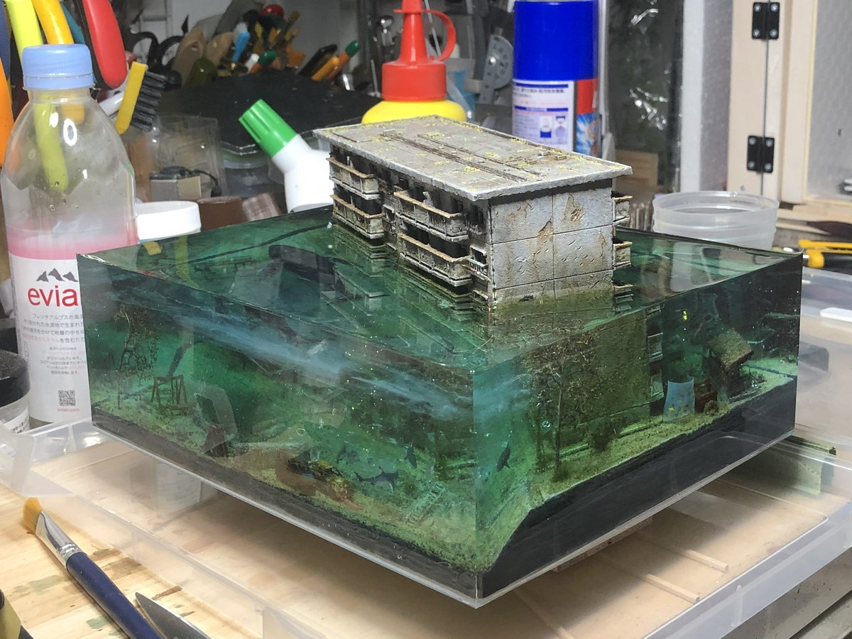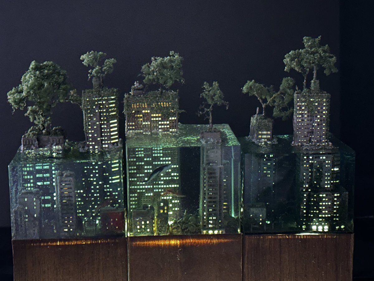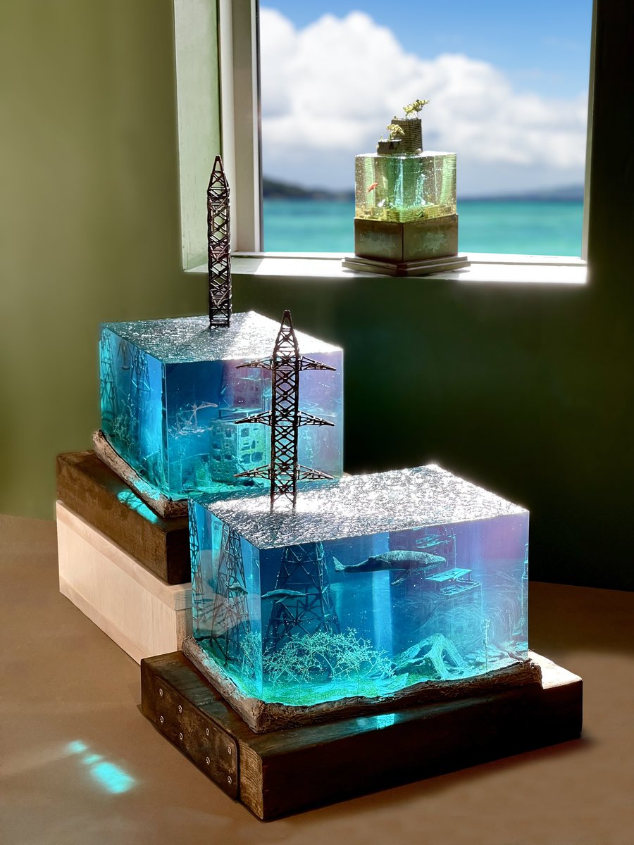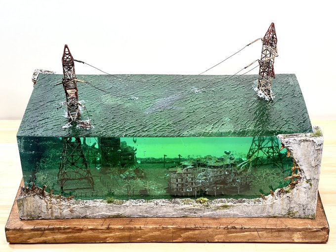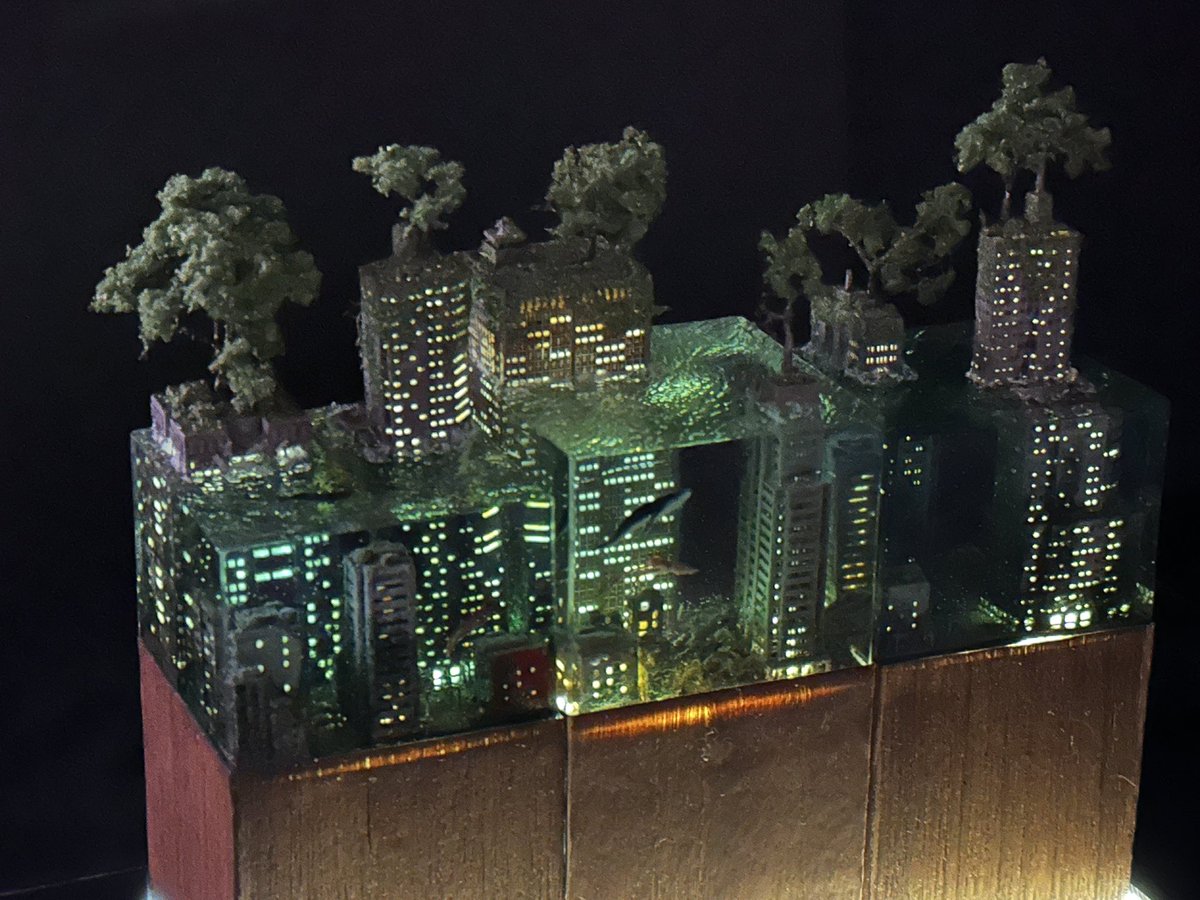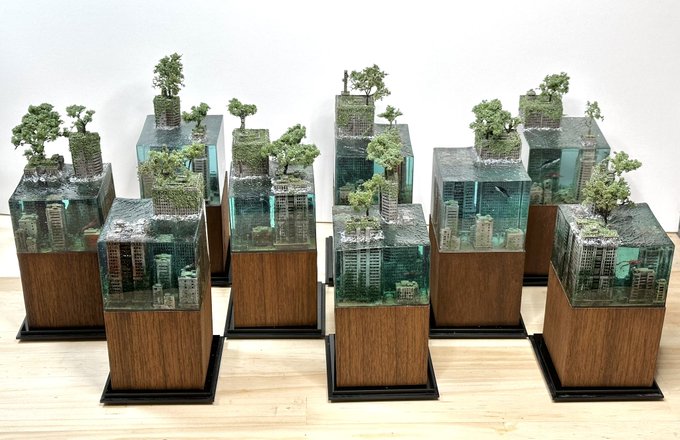 #お盆休みはフォロワーさんが増えるらしい 9月に阪神百貨店で開催予定のクリエイターズパレードに参加します! このような作品を展示販売しますのでご興味のある方はよろしくお願いします! #水没ジオラマ twitter.com/i/web/status/1…
