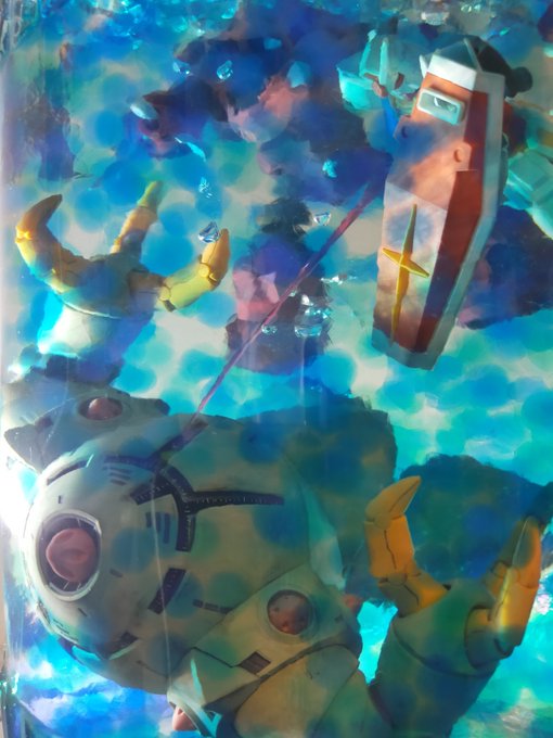 水中ジオラマっぽいのを造ってみ魔した🤗 手動で回したので動画も貼っておき魔す🤗 色んな事をやってみたい、おじさんのセカンドライフ #ガンプラ #ガンプラの画像貼るとRTされると聞いて #水泳部 twitter.com/i/web/status/1…