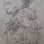 #ラフから線画と着色後と完成までを見せる 《ラフ》ってか『下描き』ですけれども(^_^;)💧 今度から真面目に(笑)《動物》描きたい時は、 このキャラ達で描いてみようかな🎵 #アナログ手描き #イラスト #ミュシャ風イラスト #水溶きサインペン #2022年初描き