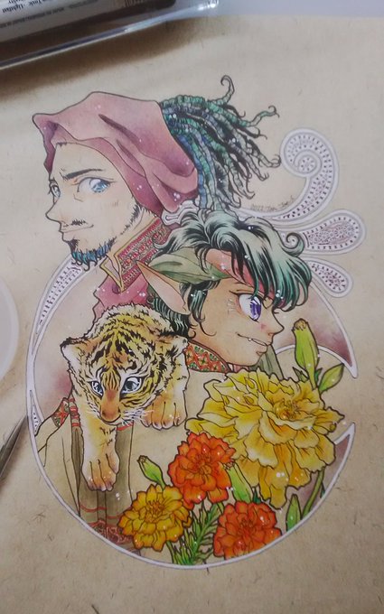 物足りない気がして、 足してみた・・・の図(^_^;)💧 #アナログ手描き #イラスト #ミュシャ風イラスト #水溶きサインペン #余計な事しちゃったかしら #良くなったよって言われたい #実は未だ付け足したい