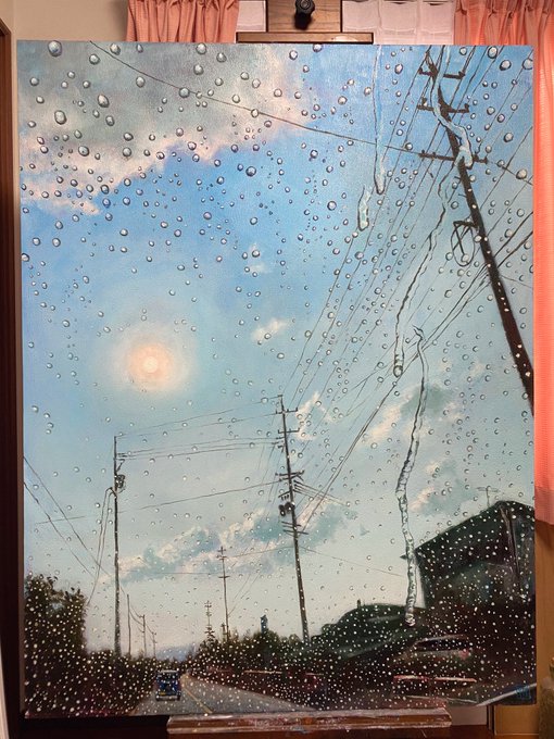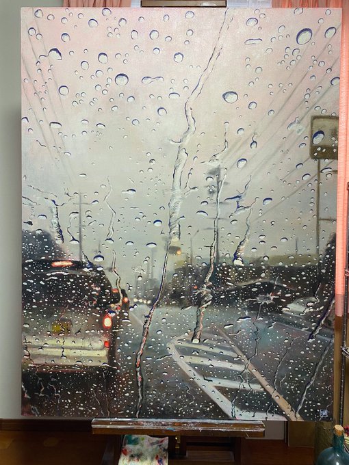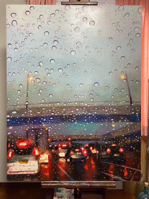 『 帰路につく みぞれ 』 油彩、F80号キャンバス 2022年制作 #絵描きさんと繋がりたい #絵柄が好みって人がいればいいなぁ #みんなで楽しむTwitter展覧会 #油絵 #水滴 #雪 #みぞれ