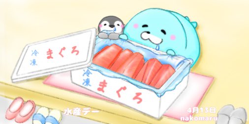 4月13日(水) 今日は水産デー🐟🐬🐳🐡🐠🐚🐙🦑晩ごはんにはおいしい魚をいただきましょう~🙌 #illustration #illustrator #art #イラスト #イラストレーター #イラストレーション #アート #日めくりカレンダー #menemene #メネメネ #1日1絵 #喫茶店の日 #水産デー