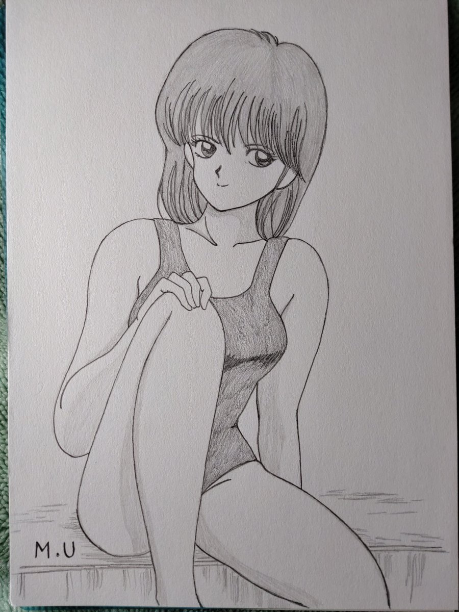 きまぐれオレンジロード、春日あかね、描いてみた、Part2 夏っぽいのを、一絵 #春日あかね #あかね #鉛筆画 #きまぐれオレンジロード #模写 #漫画キャラ #イラスト #イラスト好きな人と繋がりたい #ジャンプコミックス #水着姿