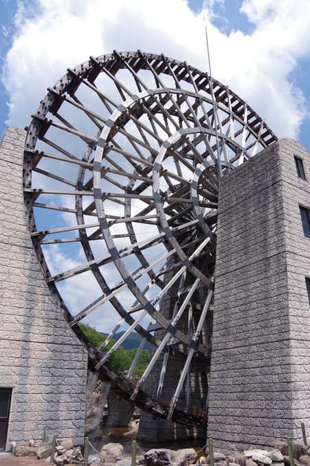 道の駅おばあちゃん市・山岡 日本一の大きさの木造水車は圧巻です。道の駅のすぐ横にある小里川ダムも良い眺めでした(^ᴗ^) #岐阜県 #恵那市 #道の駅おばあちゃん市山岡 #水車 #VOLKS #ドルフィードリーム
