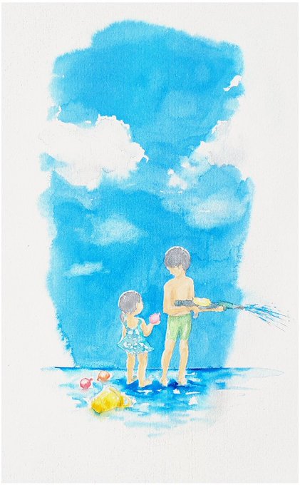 今イラスト1枚500円キャンペーン中です☺️イラスト販売もしています!気軽にDM下さい🍀 #イラスト #イラストレーション #Illust #illustration #かわいいイラスト #絵描きさんと繋がりたい #イラスト好きな人と繋がりたい #水遊び #プール #水着 #4歳 #drawing #軽美術部