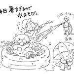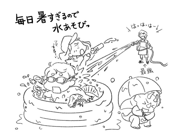 暑い日が続きますね…🎐🍉 今年は何回水遊びしましたか❓🌈 #暑いので涼しげな画像を貼る #トリトリと #漫画が読めるハッシュタグ #恐竜好きと繋がりたい #子育てあるある #夏休み #水遊び
