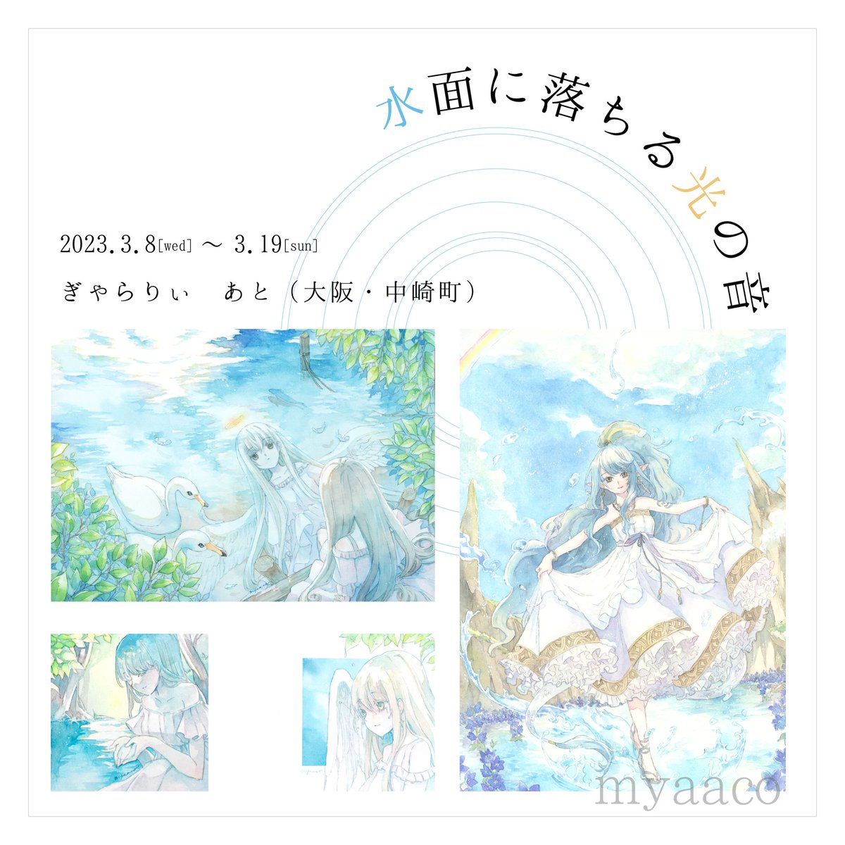 ぎゃらりぃあと様(@Ato10Gallery )の「水面に落ちる光の音」始まっていますー😌 額装5点 ドローイング3点で参加しています。 作品ツリーに繋げます😌✨ #水面に落ちる光の音