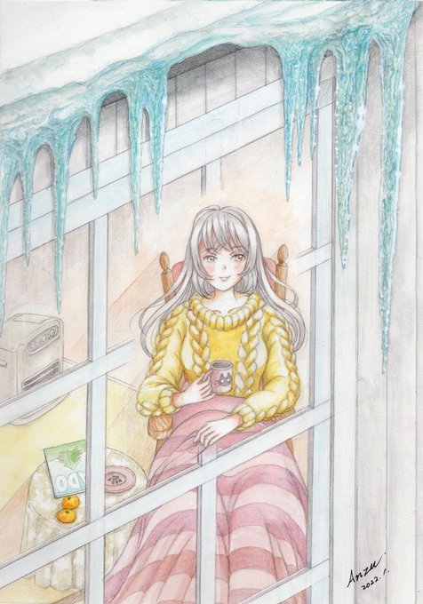 ❄️寒いのでつらら描きました(*゚▽゚)ノ 綺麗で好きです(*゚∀゚*)ヒンヤリ✨ #氷柱 #イラスト #art #作品展示会 #絵描きさんと繋がりたい #みんなで楽しむTwitter展覧会