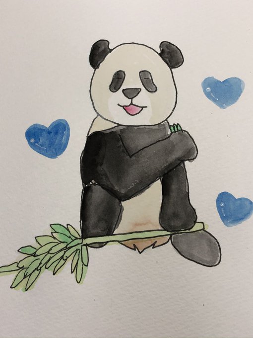 おはようございます☀️ 永明さん🐼🎩💖 🎉🎂Happy Birthday 🎂🎉 レジェンドの生誕日👏 30歳だぁー❣️ これからも元気に長生きして下さい✨ 水彩画です🖌 実はこの前のらうちゃんと並べると… ⬇️に続く #永明 #アドベンチャーワールド #イラスト