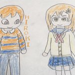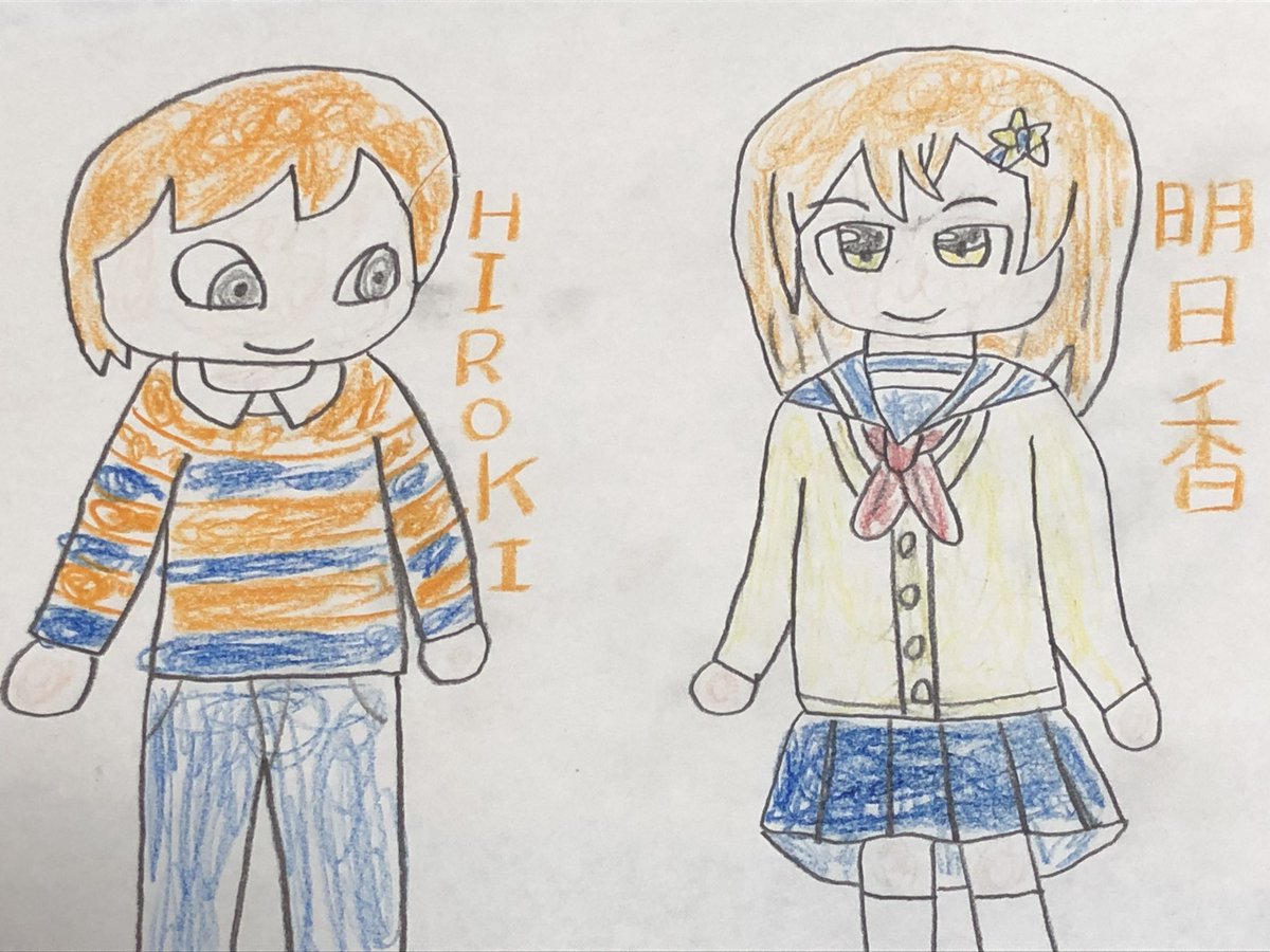 @18nGYinKlJqHU1E よその子の(霜月零奈さん)のオリキャラの明日香さんを描かせていただきました!! うちの子のひろき君とコラボしました!(オレンジ色同士で) #よその子 #うちの子 #永遠の記憶クリスタル
