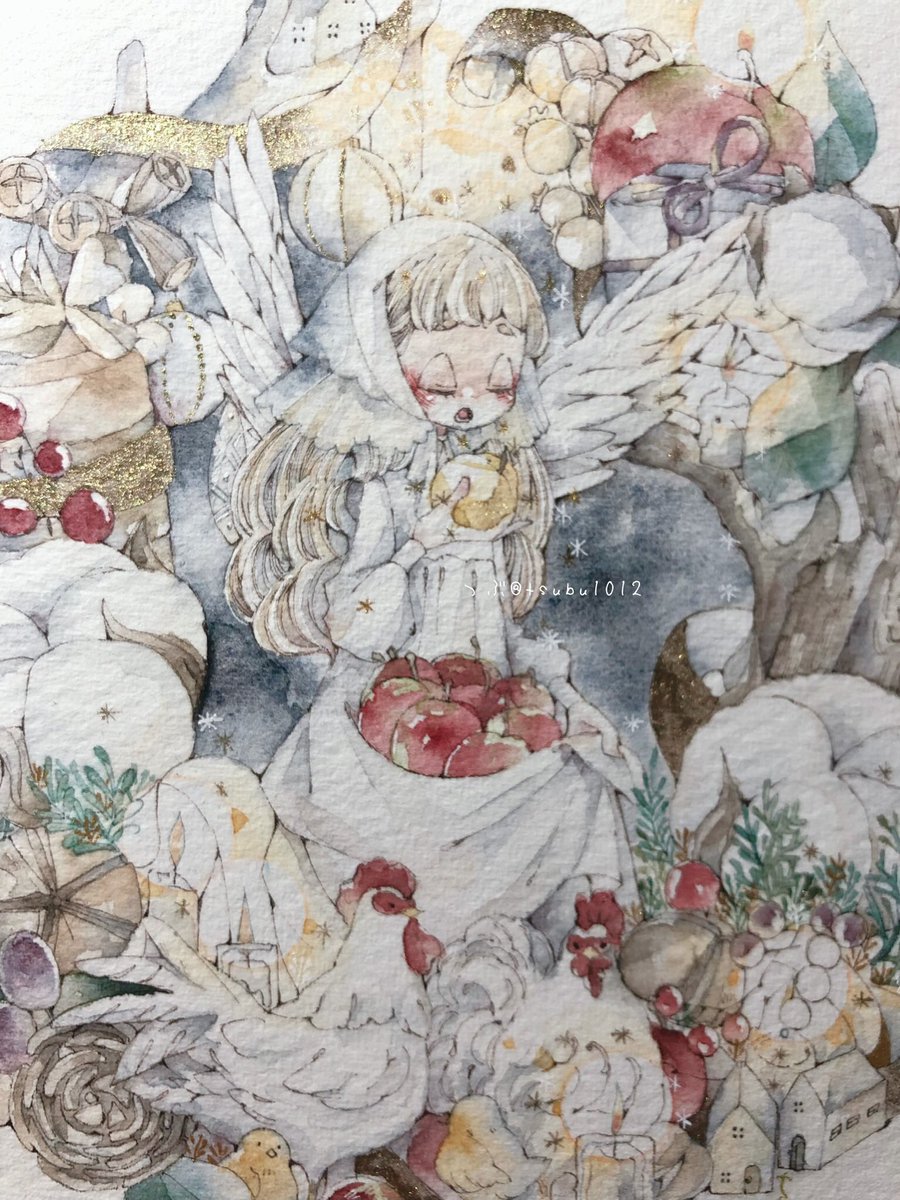 *✲゚*。⋆展示のお知らせ*✲゚*。 主催架空想様 @canaan_kikaku #汝楽園を忘れることなかれ に新作(L版とミニ原画)5点で参加します⛄️ 会期☾12/16(金)~12/19(月) 場所☾高円寺ギャルリージュイエ(東京) 私の世界の冬の楽園を描きました! 原画の方がめちゃくちゃ色味はいいです😌