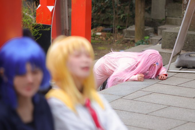 ゼェ...ハァ...ゼェ...ウグッ... ううっ ううっ........ なぜ...なぜ、まだ木曜日なんですか...... 私はもう、満身創痍です...... 人生のエスカー求む.......ヴッ #江ノ島コスプレ祭 #ぼっち・ざ・ろっく