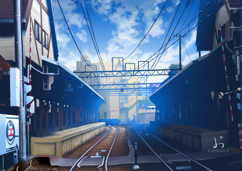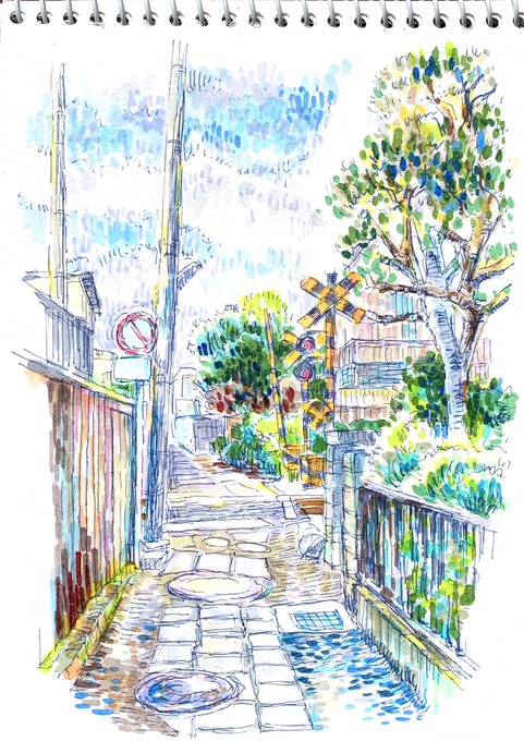『江ノ電・腰越界隈』…住宅街を走る江ノ電。近頃は柵が設置されるなど、安全性が増しています。 #江ノ電 #鎌倉 #猫のいる風景 #猫 #Illustration #Illustrator #kamakura #enoden