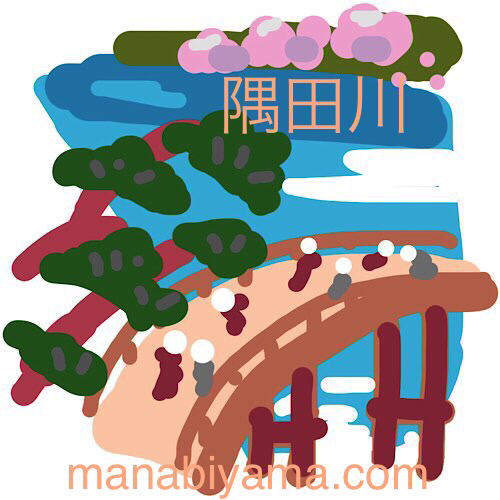 隅田川 < パラダイス。 #絵しりとり もともとは荒川の下流を隅田川と呼んでいて、いまの荒川は後から出来た水路らしい…(混乱)。 manabiyama.com #スケッチ #イラスト #illustration #隅田川 #浮世絵 #時代劇 #江戸 #和風 #sumidariver #manabeepic #イラストレーター #122mo