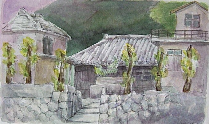おはようございます🌺 本日の一点は『赤瓦民家』 水彩画 F3 私はザックリ描いた風景画ばかりだけど…今年はもう少し時間をかけてしっかり描き込んだ作品も描いてみようかな!? #水彩画 #沖縄風景画 #沖縄 #沖縄の民家 #絵 #絵描きさんと繋がりたい #みんなで楽しむTwitter展覧会