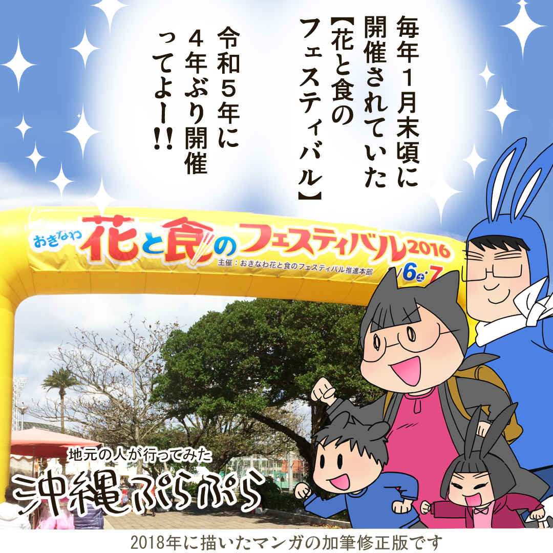 地元の人が行ってみた沖縄ぷらぷら 【#おきなわ花と食のフェスティバル】① 今年は4年ぶりに1月21日(土)・22日(日)開催✨ とても楽しみです♪ #沖縄 #イベント #花と食のフェスティバル #花食2023 #おきなわ花と食のフェスティバル2023 #沖縄ぷらぷら #漫画が読めるハッシュタグ #レポ漫画 #マンガ