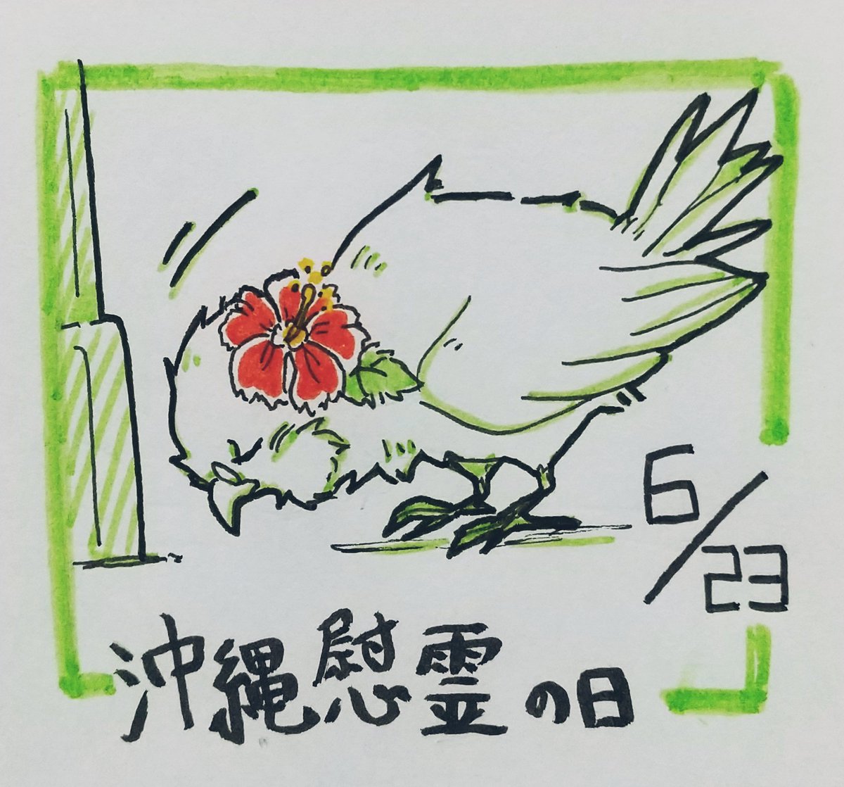 6月23日は沖縄慰霊の日🌺 8月初旬に沖縄へ新婚旅行に行く予定です✈️💨 #今日は何の日 #イラスト好きな人と繋がりたい #お絵描き #鳥 #一日一絵 #ペン画 #6月23日 #沖縄慰霊の日2022 #沖縄慰霊の日 #お絵描き好きさんと繋がりたい #日めくりカレンダー