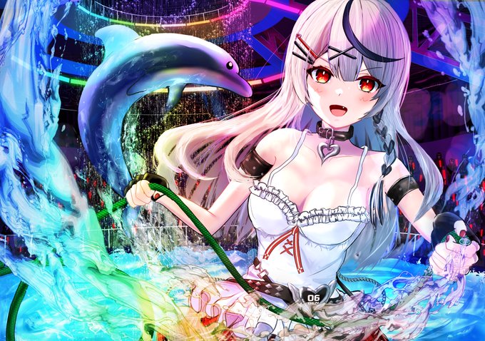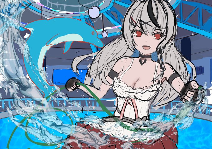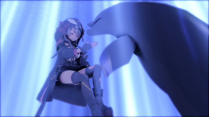 #さかまた飼育日記 #沙花叉とびしょ濡れ水族館 現地行った時にドルフィントレーナーさんの衣装がすごく可愛いかったので、沙花叉に着せました!🐬(そういえば、沙花叉がカバー初来社行ってた時と似てたな〜 シナジー感じる…!)