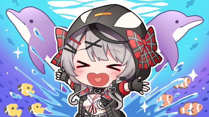 【お仕事告知】 改めまして沙花叉クロヱさん(@sakamatachloe)の アクアパーク品川さまとのコラボ 【#沙花叉とびしょ濡れ水族館 】の SDイラストを担当させて頂きました! イベントもすごい力が入ってて今から楽しみ🐬 是非よろしくお願い致します🎣 #さかまた飼育日記