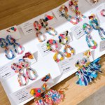 #沢山並んだ作品かわいいから見ていって 絵を描いた時にパレットに残る廃棄絵具のみを使って作る身に付けるアート🌈 2/14(火)まで阪神百貨店4階にて販売中です!個人通販をしていないのでお見逃しなく!