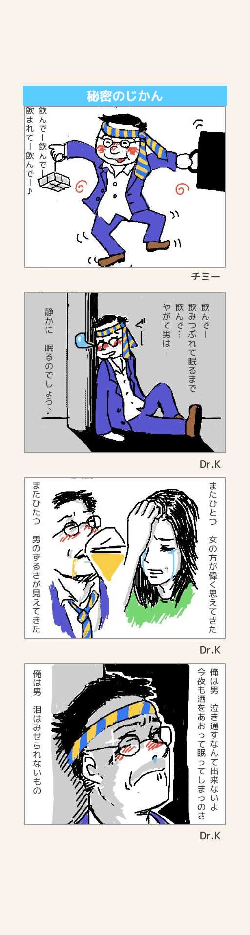 作品13:酒と泪と男と女 言わずと知れた懐メロです。コマを追うごとに漂う哀愁に注目!! 画像ではなくtweetをタップしてご覧ください #考えるひとコマ #4コマ漫画 #マンガが読めるハッシュタグ #創作漫画 #みんなで楽しむTwitter展覧会 #絵描きさんと繋がりたい #河島英五