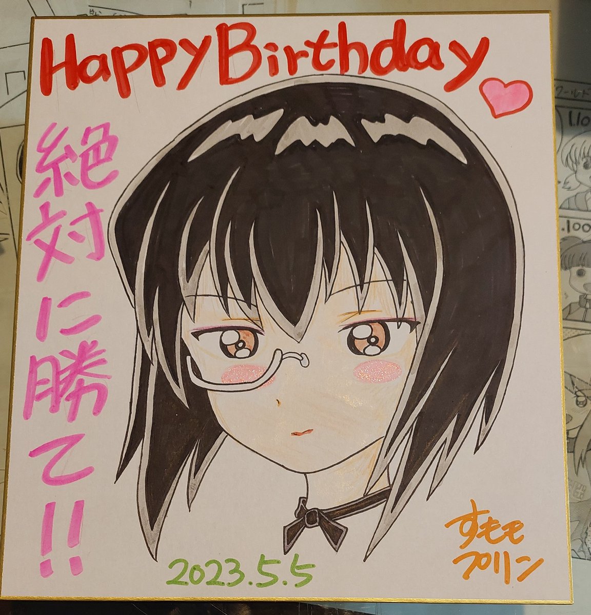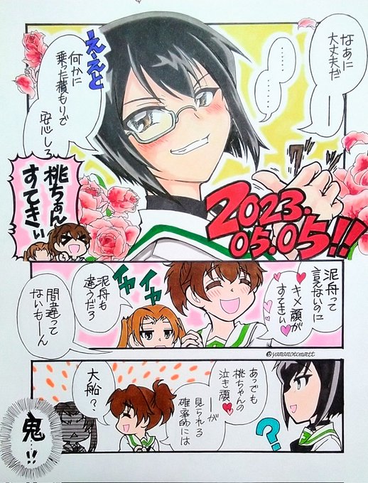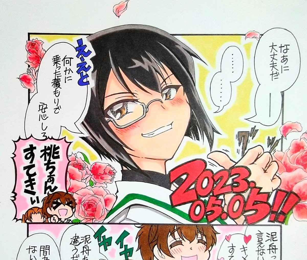 桃ちゃん♥️HAPPY♥️BIRTHDAY♥️ お誕生日おめでとうございます。 今日は、浅草の都立産業貿易センター台東館でガルパンの同人誌即売会「ぱんつぁ~ふぉ~」が開催されます。 ガルパン四コマ漫画「ちょうちょ」と色紙を持って参加します。 #河嶋桃生誕祭2023 #河嶋桃生誕祭