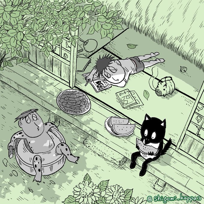 8月…お前も行ってしまうのか…遠いところへ。 何もなかったけどあっという間だったな…来年は何か記憶に残る事しような…🥲🍉🍧🎆せめて過去絵を載せておこう、ありがとう8月。 #河童の三平 #河童の三平60th