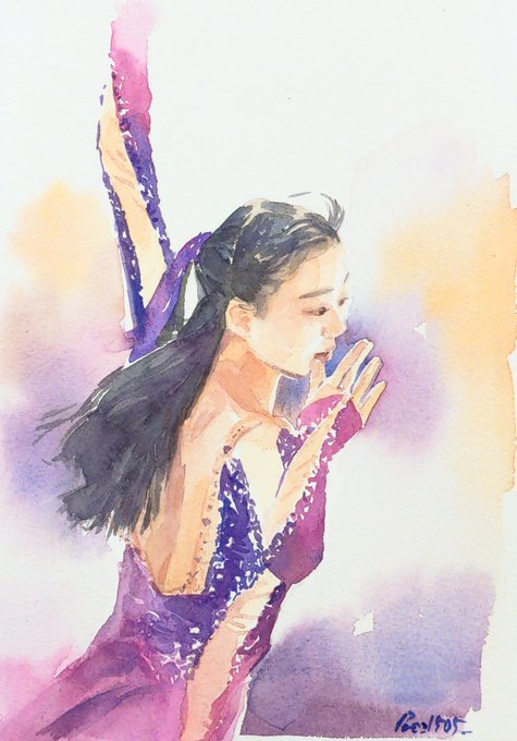 愛菜ちゃんのMiracle✨JOの時から描きたいと思っていたので、お祝いとお疲れ様の気持ちを込めて🎂今日のフリー、お見事でした✨😭‼️ お誕生日おめでとうございます🎉怪我なく実り多き17歳になりますように! (📷スポニチ写真映像部) #河辺愛菜 #ManaKawabe #水彩画 #watercolour