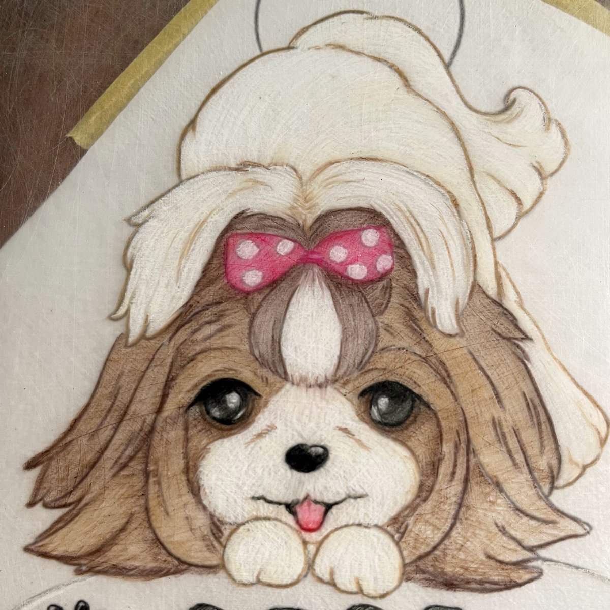バッグチャーム用のわんちゃんに色鉛筆で色を塗り塗り トースター壊れたのでプラ板焼くのは明日届いてから😅上手く焼けると良いな。#プラ板 #油性色鉛筆 #カリスマカラー #イラスト好きさんと繋がりたい #色鉛筆 #塗り絵 #ネルコさんおめでとう