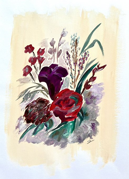 Good afternoon 💗💜💖 #こんばんは #buonaserata #floral #art #painting #illustrationart #illustration #oilpainting #arte #contemporaryart #イラスト #アート #油絵画