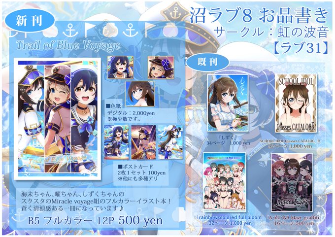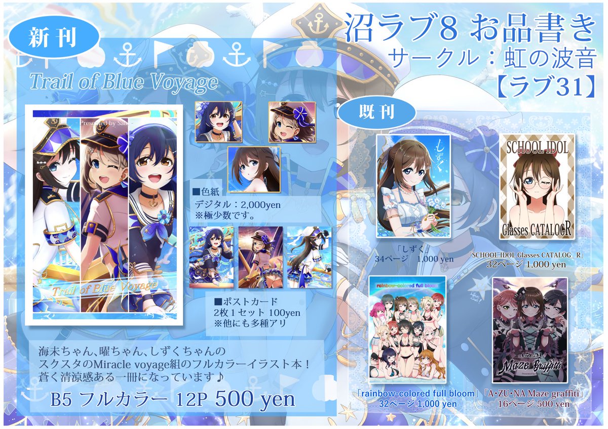 沼ラブ8に出すちかりこ本 内容の一部です。お値段は500円 既刊本も少し持っていきます。 スペースは「ま25」です よろしくお願いします。 漫画数ページの内容はpixivに載せてます。 pixiv.net/artworks/10818… #沼ラブ8 #ちかりこ #高海千歌 #桜内梨子 #lovelive #ラブライブサンシャイン
