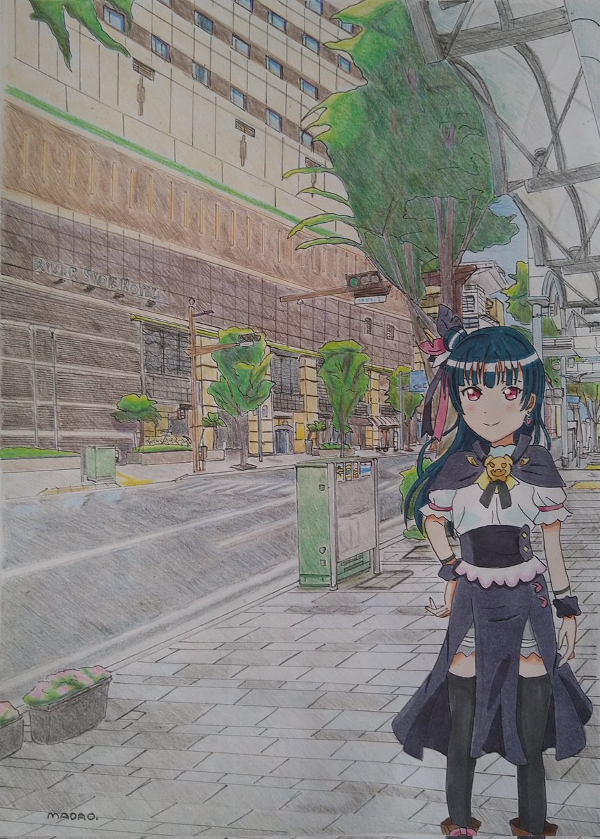 津島善子誕生日イラスト 「今宵の宴の地へ」 沼津市上土 リバーサイドホテル。 アナログイラスト 初の幻日のヨハネ衣装になります。 #津島善子生誕祭2022 #津島善子誕生祭2022 #幻日のヨハネ #lovelive #Aqours #沼津