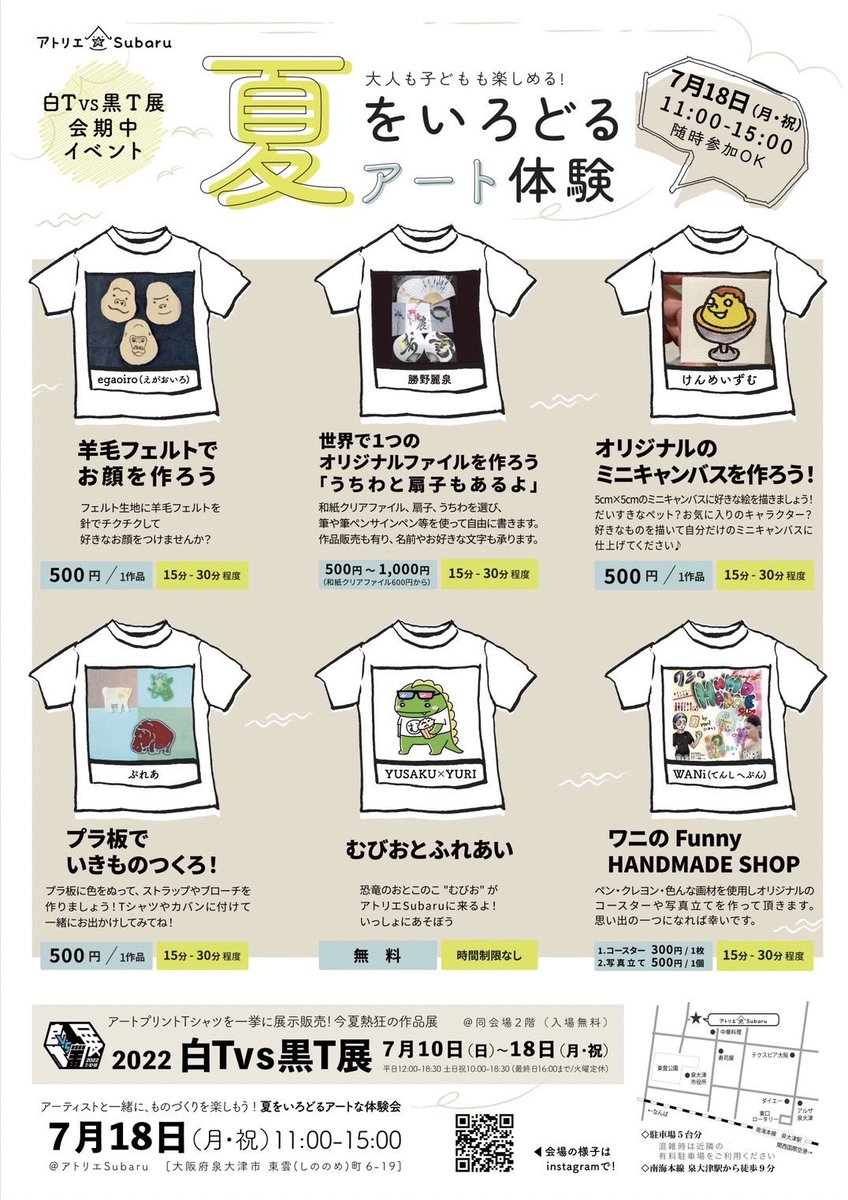 7月10日まであと少しです😁✨ 白t vs黒t展に参加いたします☺️ 沢山のアーティストの方々とお会いできる事を楽しみにしております😏 #絵描きさんと繋がりたい #アトリエsubaru #Tシャツ #泉大津 #アート