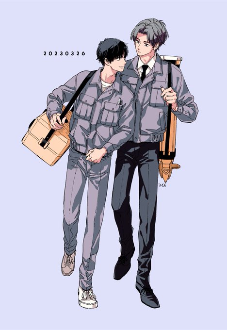 今日の絵は神シリーズに出てきたタカと鳥海くんです。測量はいいぞ…!リクエストありがとうございました😊😊 ワイシャツネクタイに作業着の組み合わせが永遠に好きすぎて隙あらば描きたい病です #その神は役場にいる #泡にもなれない恋ならば twitter.com/erin58844255/s…