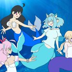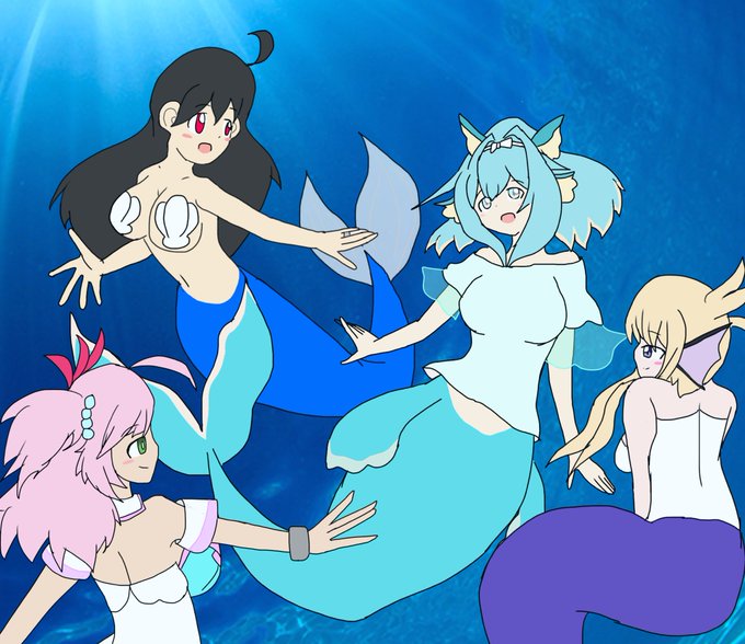 #泡に消えない人魚の絵本 出来たどーー(*´∇`*) 可愛い人魚を他の可愛い人魚達が囲む感じに描いてみた🧜♀️💖 うちのにょた( @taimermaid ) けーおすちゃん(@Chaos_0401 ) オオトロさん(@ootorchan5674 ) でるぅたんを囲んだぜぃ💖