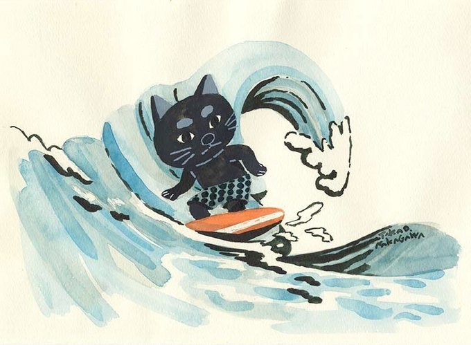 7月3日は #波の日 #ソフトクリームの日 という事でソフトクリームのような波に乗るサーファーねこを描きました。 今回は欲張って2つの日を取り入れた絵にしてみました。 note.com/ekakinonakagaw…