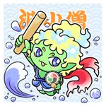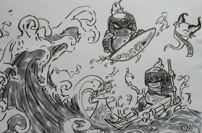 【びっぐ・うえいぶ】 本日は『#波の日』とあって。 住み慣れた川を離れ、波を求めいざ大海へ。さて、海に落ちたらどうなるか。河童が土左衛門なんて洒落にならねえ、川は川でも三途の川は御免被る。龍神様も御照覧あれ、波を相手にえんやこら。 #そろぷ #そろぷファンアート #ソロモンプログラム