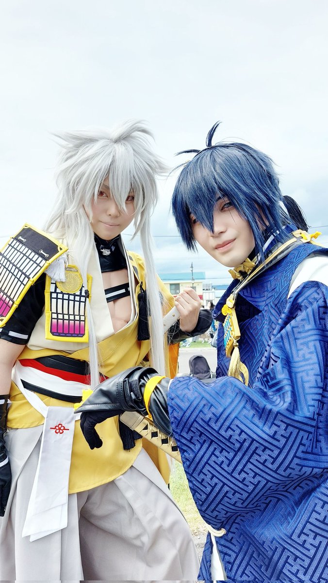 ⚠️cos⚠️ 小狐丸▶なぎなぎ 三日月宗近▶霊鬼さん(@ryouki_cos) 縁側でお茶を…もとい縁石でビール飲んでた三日月さんをナンパして三条太刀でご一緒できました!ありがとうございます✨ のんびりしてたらもう1ヶ月以上経ってしまいました😂💦 #TMAF2022 #洞爺湖マンガアニメフェスタ