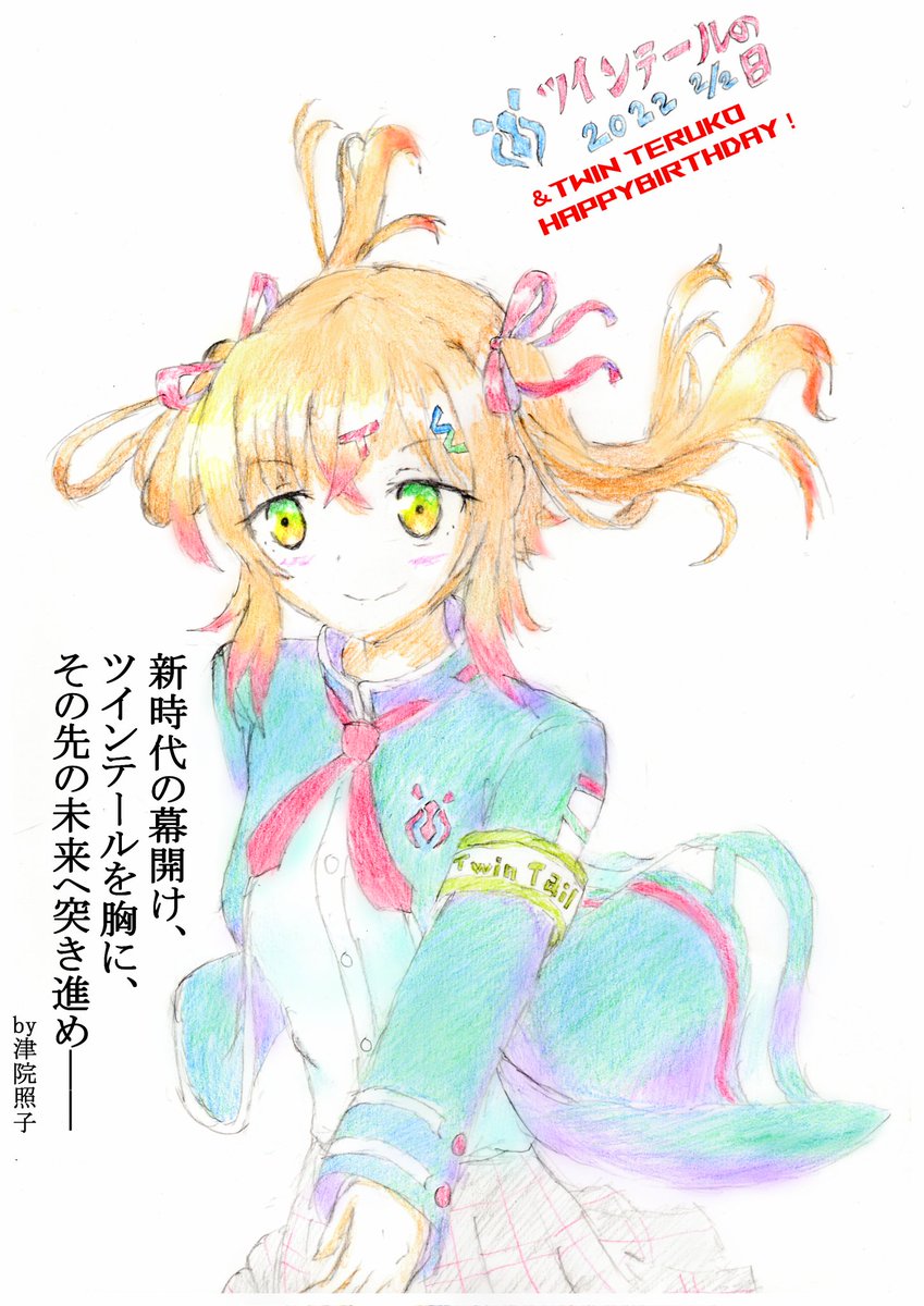 #ツインテールの日2023 #津院照子 大遅刻ですが、ツインテールの日&うちのツインテールの化身(?)の誕生日記念に、津院照子(ツイン テルコ)描きました! なんとこの子ももう5年目に突入しました! 今年こそ3D化しないと!