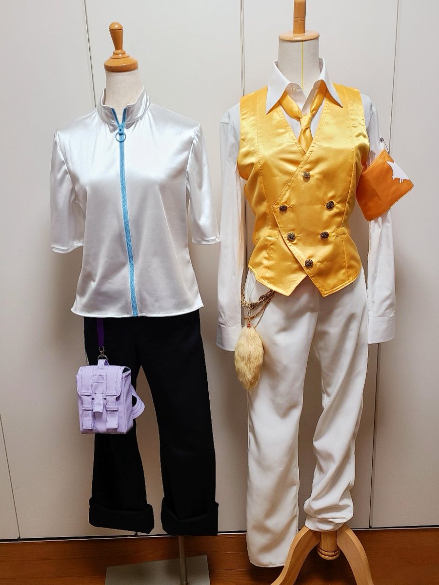 にっこり~😊できた🎶 お揃いで作りたくってtgbt一気に作っちゃった🦊✌️⚔️ 布お揃いで作ったから統一感もあって最高に可愛く作れたHAPPY👍💓💓💓 ⚔️はボタンとか装飾も紫で作ったから色の一致加減お気に入りだし🦊✌️のファーも染め上手くできて理想色~👏👏❣️ #洸雅ファクトリー #こがの衣装進捗記録