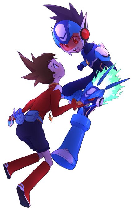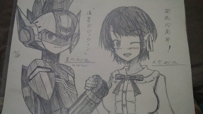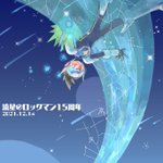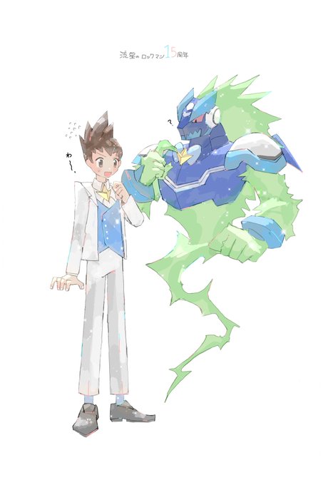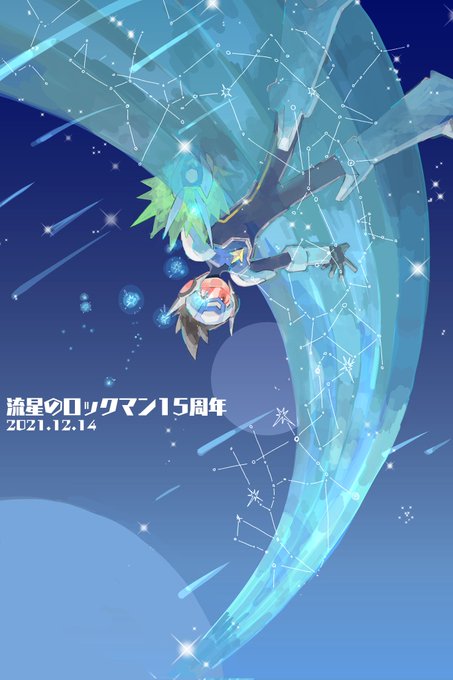 #流星のロックマン15周年 今描いてるお祝い絵が本日中に間に合いそうにないので過去絵置いときます!15周年おめでとう!!! 去年出したイラスト本の表紙絵だけど、この構図が浮かんだら本のタイトル『Be a Hero』がすんなり決まりました。少年の成長…よき…