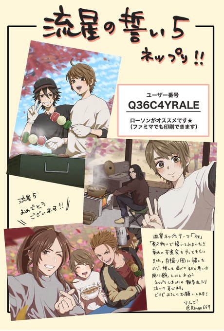 ネットプリント企画「フリー」で新規1点、過去絵5点で参加します! 準備が整い次第店舗とTwitterにて番号のお知らせをします!! 流星開催まであともうちょっとだけお待ち下さいね。 #流星5ネップリ企画