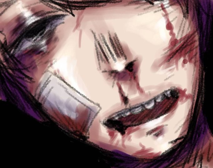 #イラスト #二次創作 #流血 #絵描きさんフォロバ100 #絵柄が好みっていう人にフォローされたい #絵柄が好みって人がいればいいなぁ ⚠️血、流血表現があるので 苦手な人❌⚠️ 💉🩸ちゃん描いた 『ハハハッッ( `∀´)!!!!』