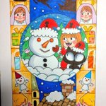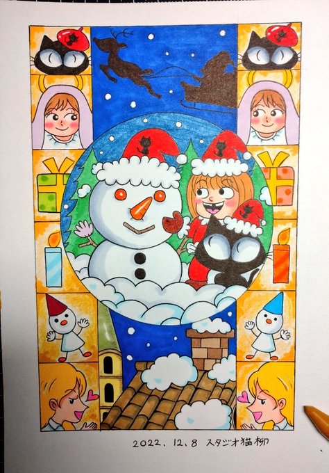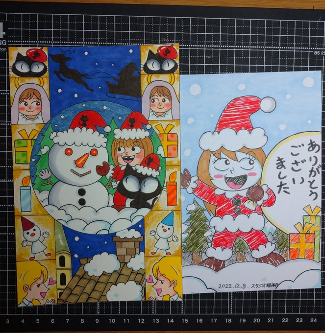 注文御依頼を受けていた、浄土真宗Xmasイラスト御朱印と、御礼ハガキイラストが完成しました⛄🎄 出来映えはどうでしょうか? #イラスト #絵描きさんと繋がりたい #冬の創作クラスターフォロー祭り #絵柄が好みって人がいればいいなぁ #イラストレーター #浄土真宗 #スタジオ猫柳
