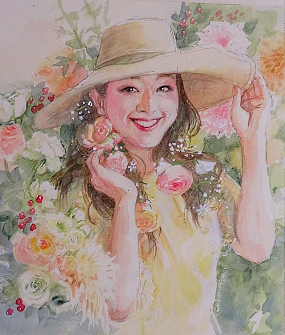 浅田真央さん お誕生日おめでとうございます🎉🎂🎉🤞🏻 ̖́- いつも進化と深化をやめない貴女を尊敬してます❣️💓💞 (お花に包まれた真央ちゃんはやっぱり描きたくなる🌹✨🙈 #浅田真央 らしきもの #HBDMaoAsada #浅田真央誕生祭2022 #watercolor #fanart