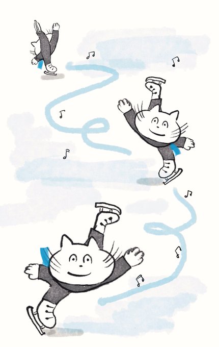 ちょうしのっちゃって ねここ⛸ 脳内BGMは skaters waltzでおねがいします🎶 #スパイラル #フィギュアスケート #浅田真央 #ねここ #ホワイトボード #みんなで楽しむTwitter展覧会 #イラスト #ゆりあん