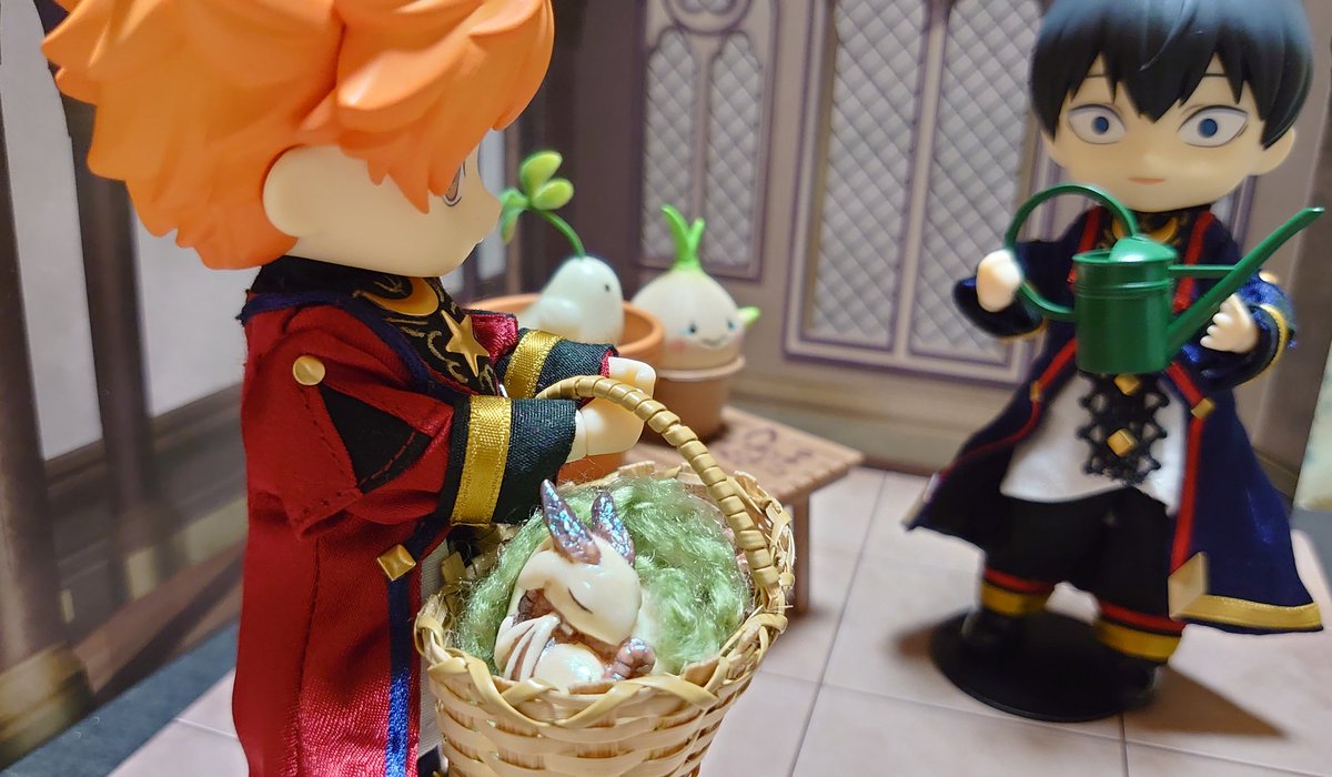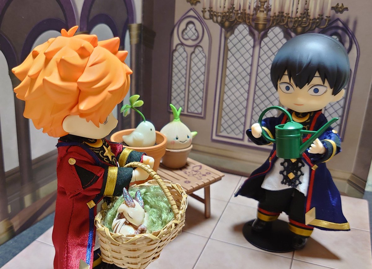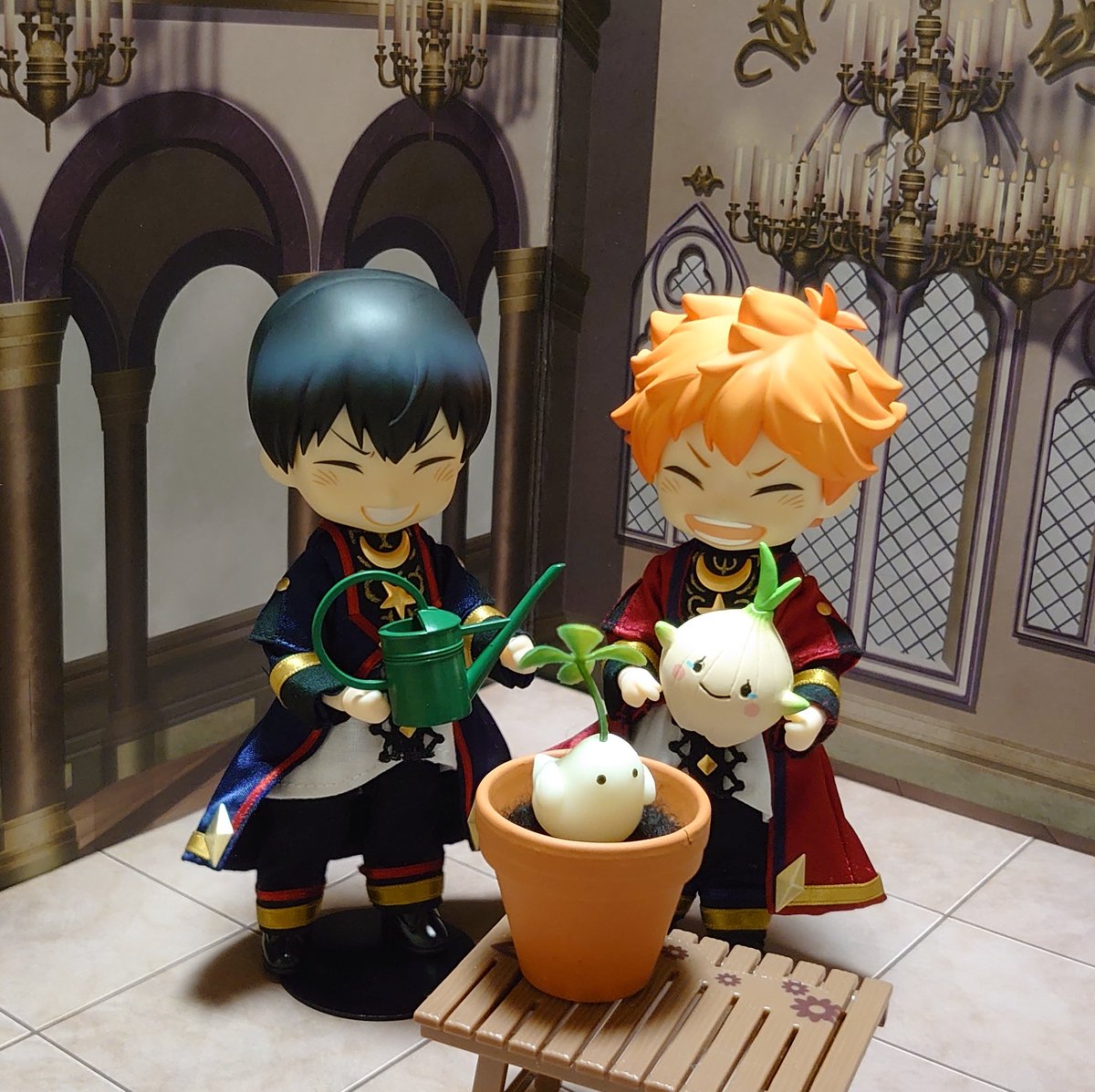 【3/24のお題:おどろく】(既出) 日向「かげやまー!ほらっ!!竜がいるぞ!!!」 影山「りゅっ!?………じゃねえ!元いたとこに返してこい!!」 #深夜のねんどろ撮影60分一本勝負 #夜光マンドレイク #浅葱色の箒星 #ねんどろいどどーる